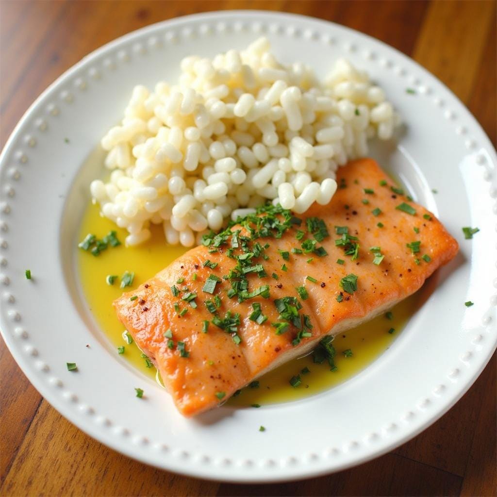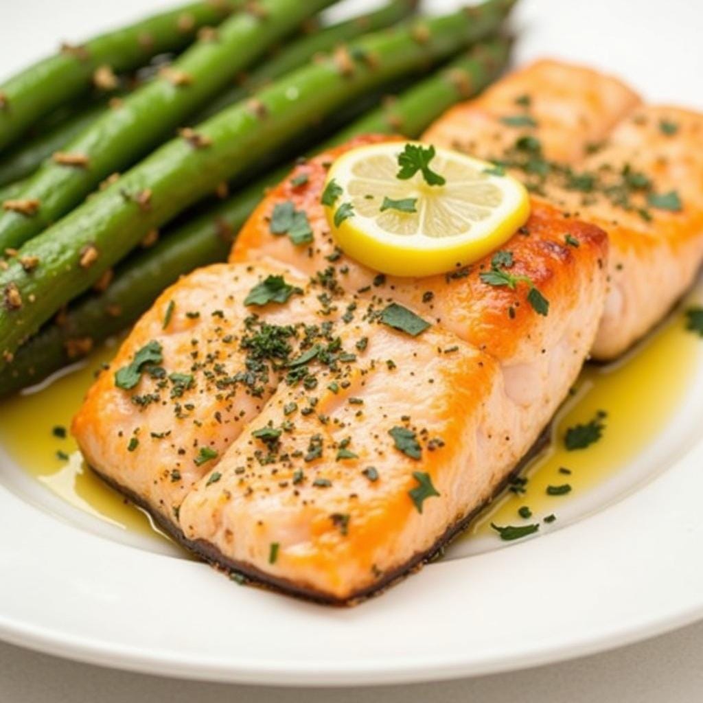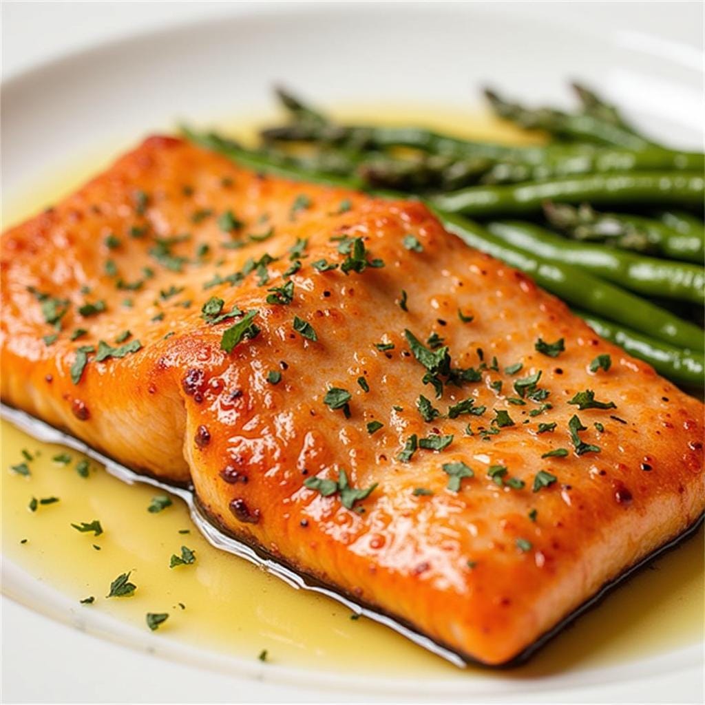 Pan-seared salmon is topped with a garlic butter sauce and fresh parsley for an effortless yet gourmet result.
