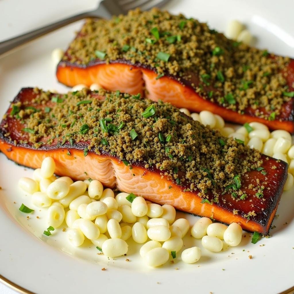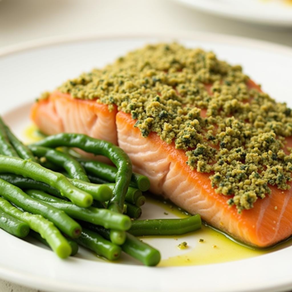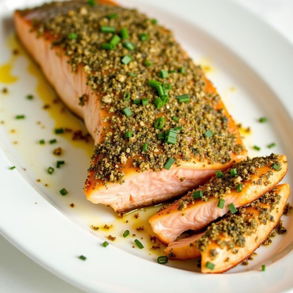 Coat salmon with fresh herbs, breadcrumbs, and lemon zest before baking for a crispy, aromatic crust.