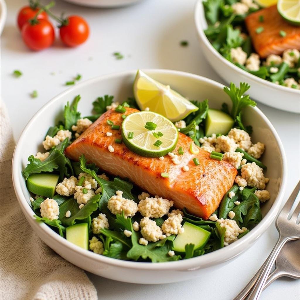 Achieve crispy salmon skin by searing it in a hot pan with minimal oil, then serving it with a light vinaigrette.