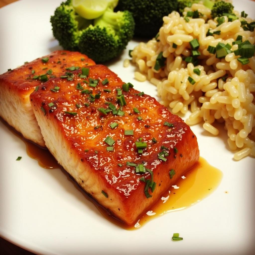 This pan-seared salmon is glazed with a blend of honey, garlic, soy sauce, and lime juice for a caramelized finish.
