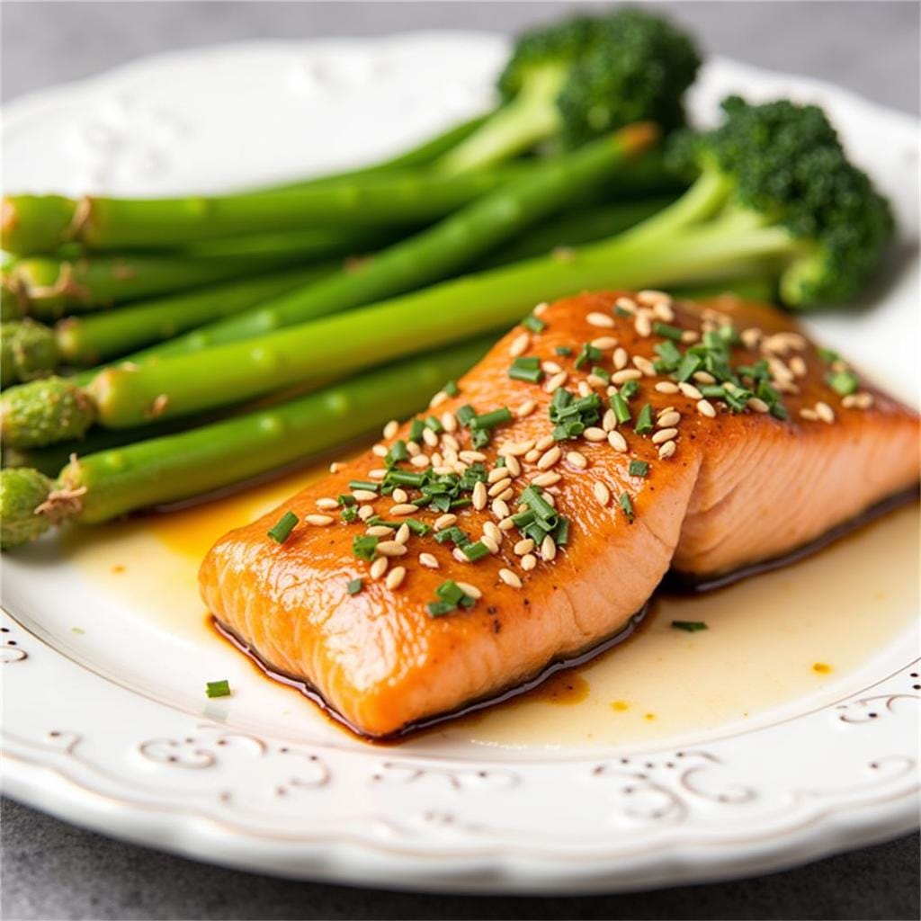 This Asian-inspired recipe features a miso, soy sauce, and sesame glaze that enhances the salmon’s natural flavors.