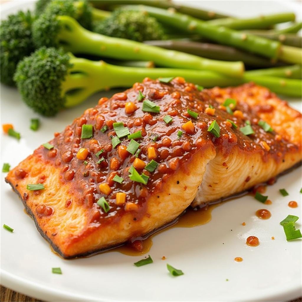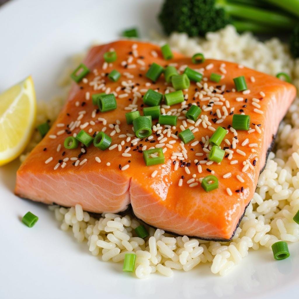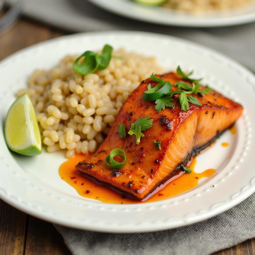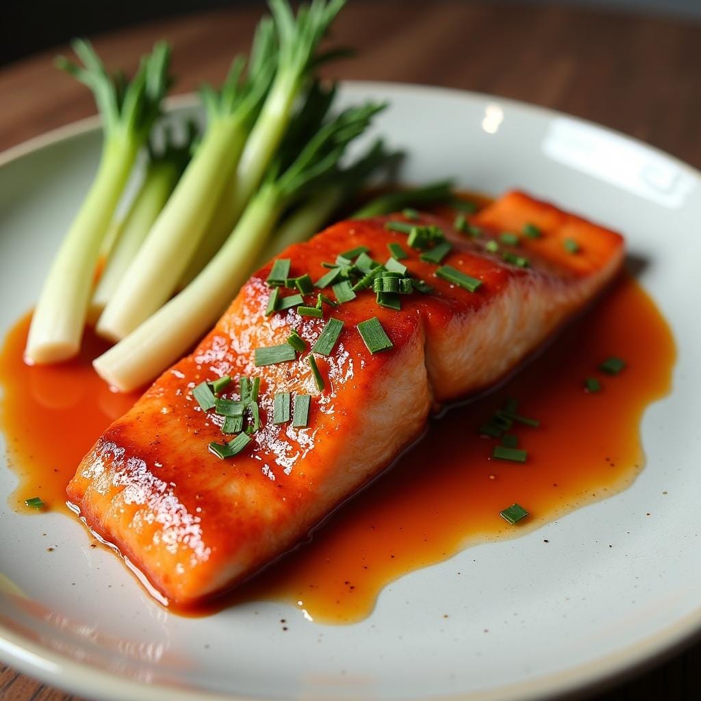 This recipe features salmon glazed with a mix of Sriracha, honey, and soy sauce for a sweet and spicy kick.