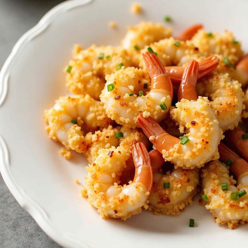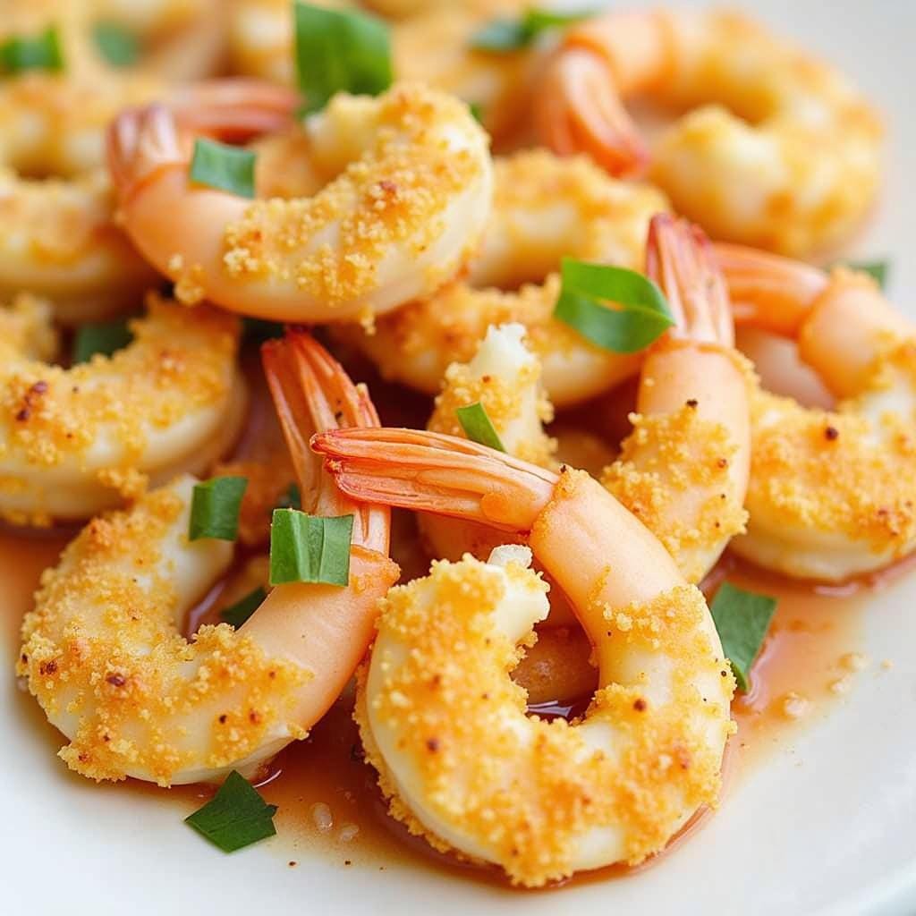 Shrimp coated in Parmesan and breadcrumbs is baked until golden, making it a healthier alternative to fried options.