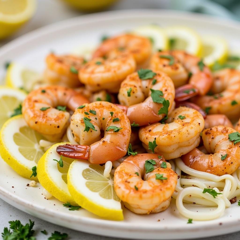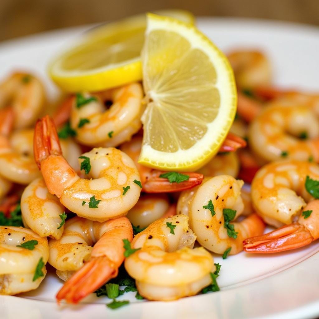 Juicy shrimp cooked in a buttery garlic and lemon sauce is a quick and flavorful dish. Pair it with linguine for a complete meal.