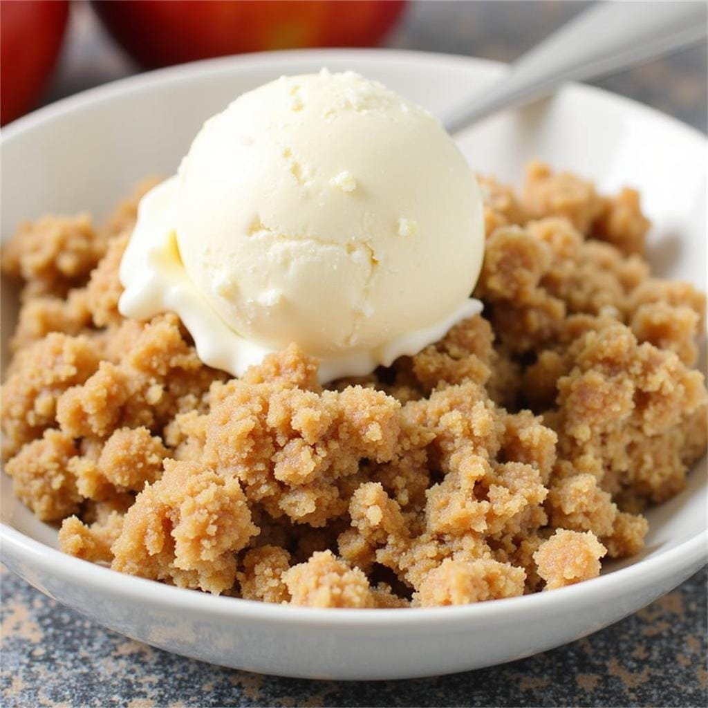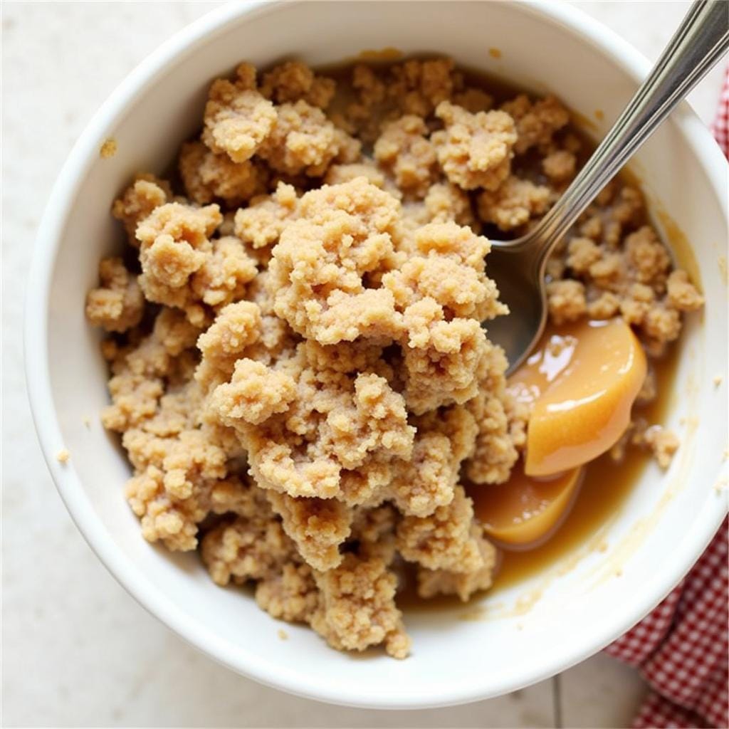 - Mix almond flour, oats, cinnamon, and sweetener, and sprinkle over the apples.