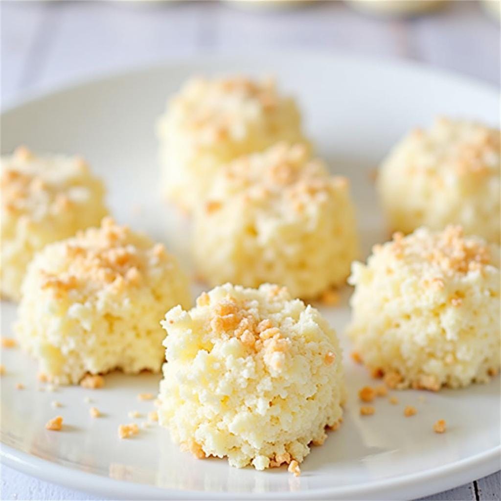 - Beat egg whites until stiff peaks form, then fold in erythritol and coconut.