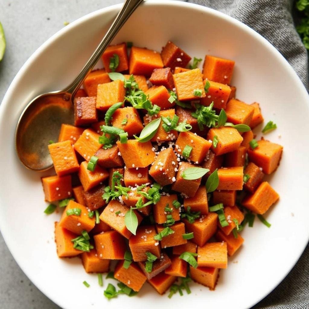 Tip: Add a dollop of avocado crema (blended avocado, lime juice, and sour cream) to balance the sweetness of the potatoes and add creaminess.