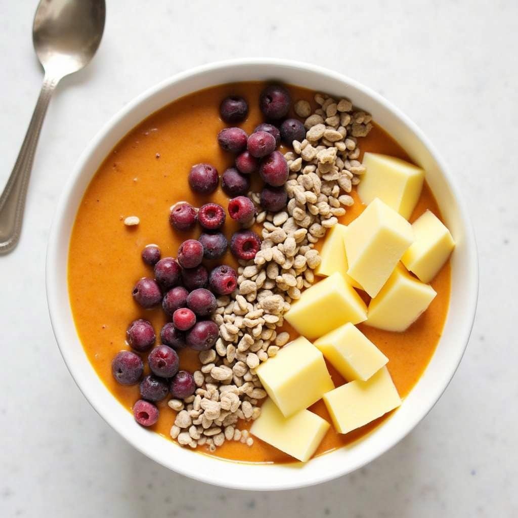 Tip: Use frozen sweet potato cubes instead of fresh to create a thicker, creamier base for your smoothie bowl.