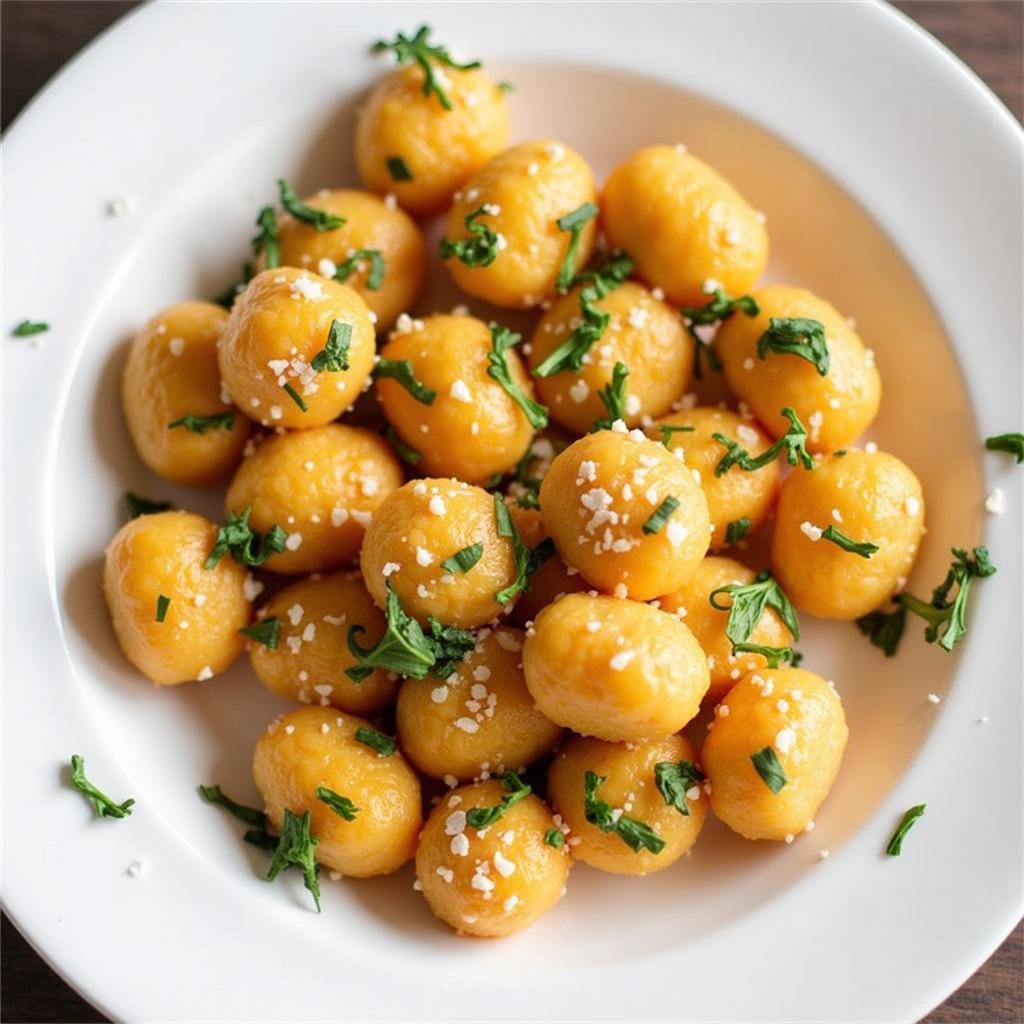 An elegant dish featuring homemade sweet potato gnocchi in a flavorful sage butter sauce.