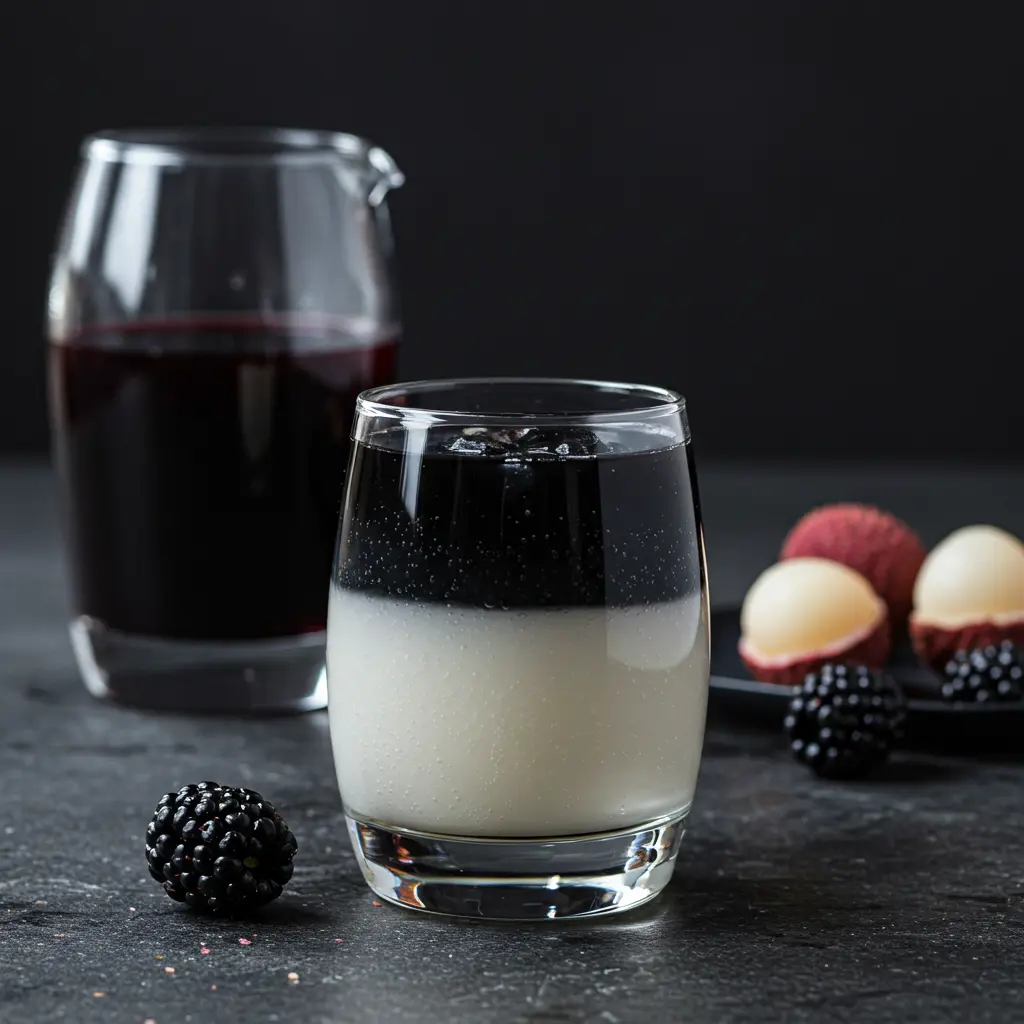 - Serve over ice, garnished with fresh blackberries.