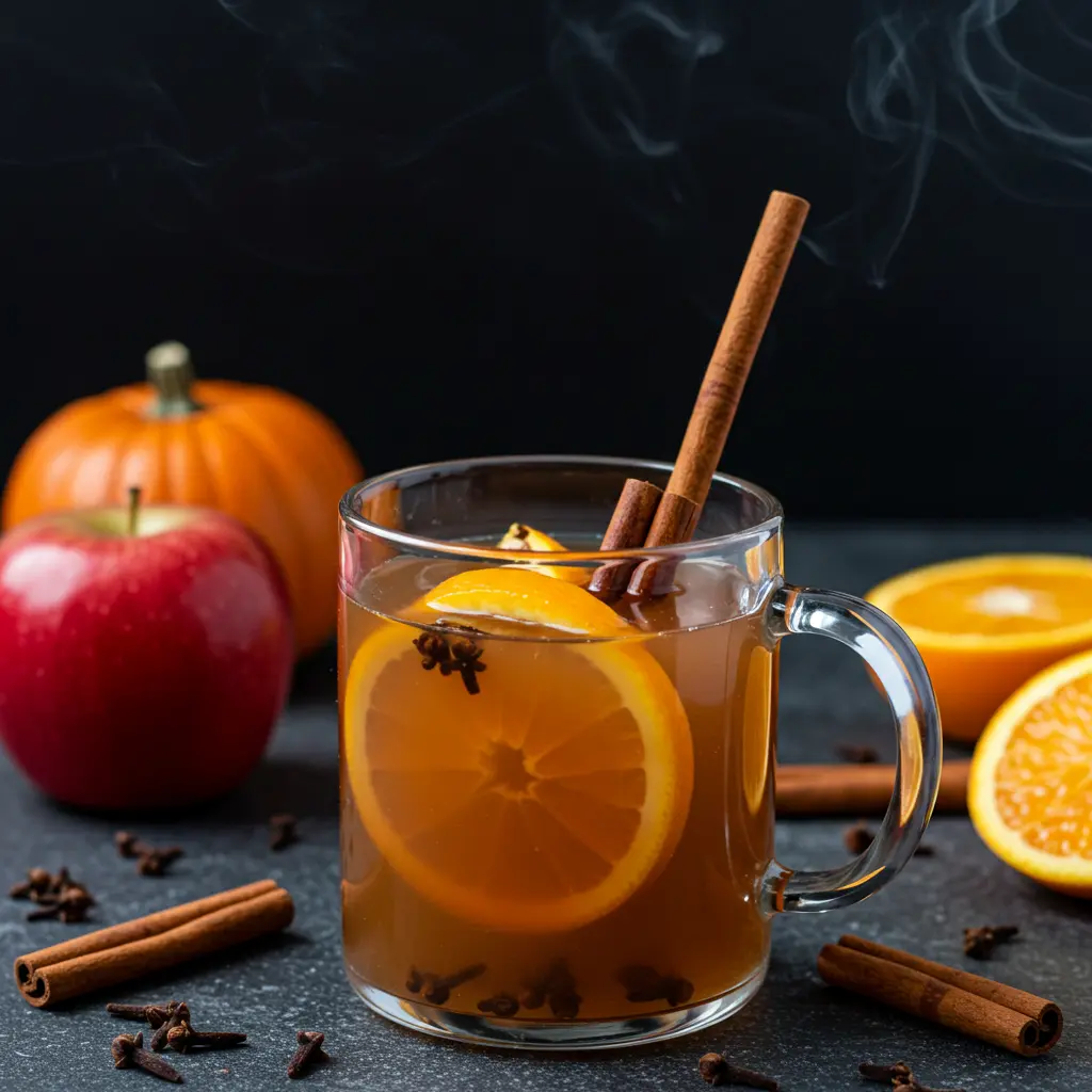 - Combine the apple cider, cloves, cinnamon sticks, and orange slices in a large pot.