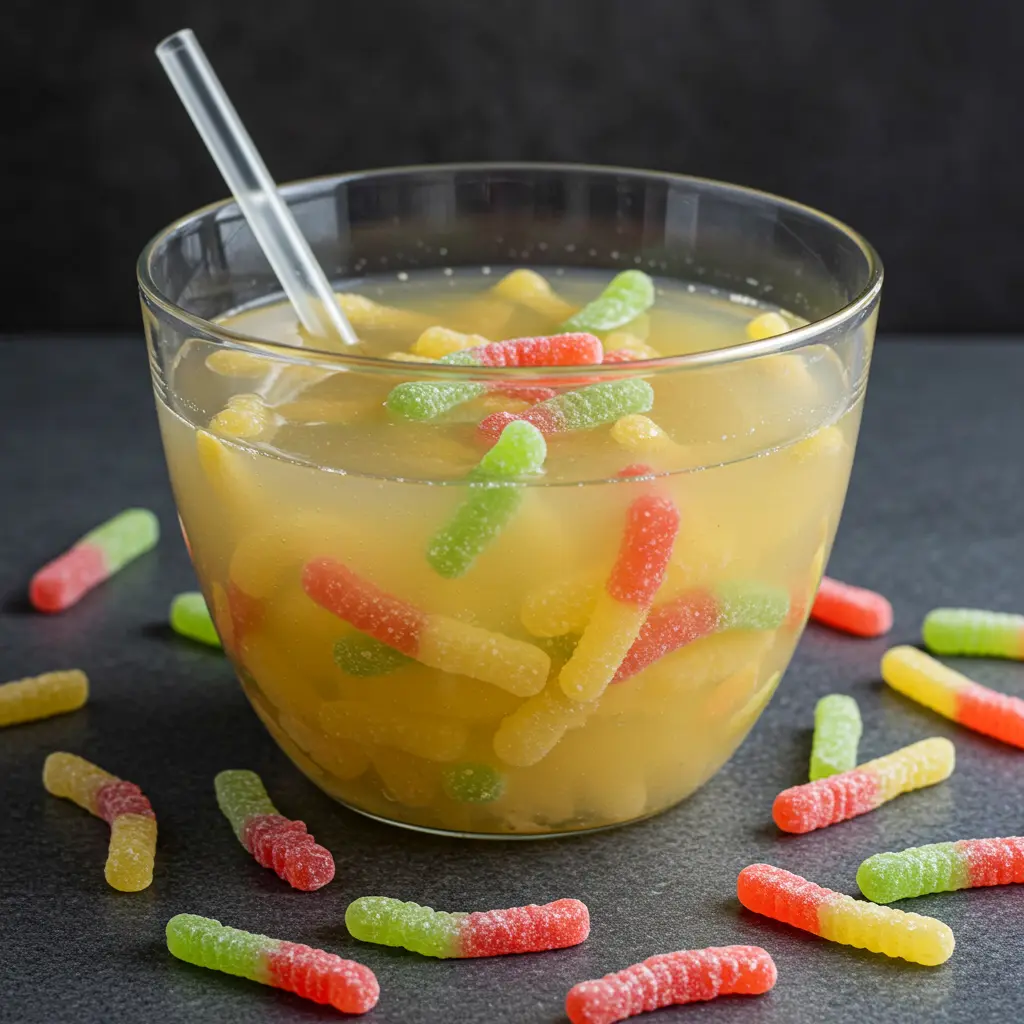 - Combine the soda and pineapple juice in a clear punch bowl. Add the swollen “specimens.”