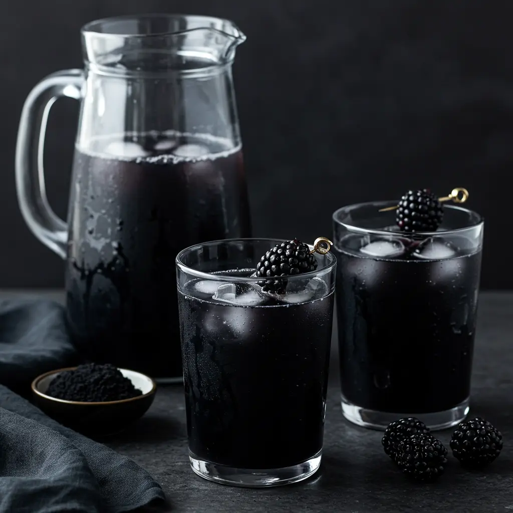 - In a pitcher, whisk the activated charcoal into the lemonade until it is completely dissolved and the liquid is black.