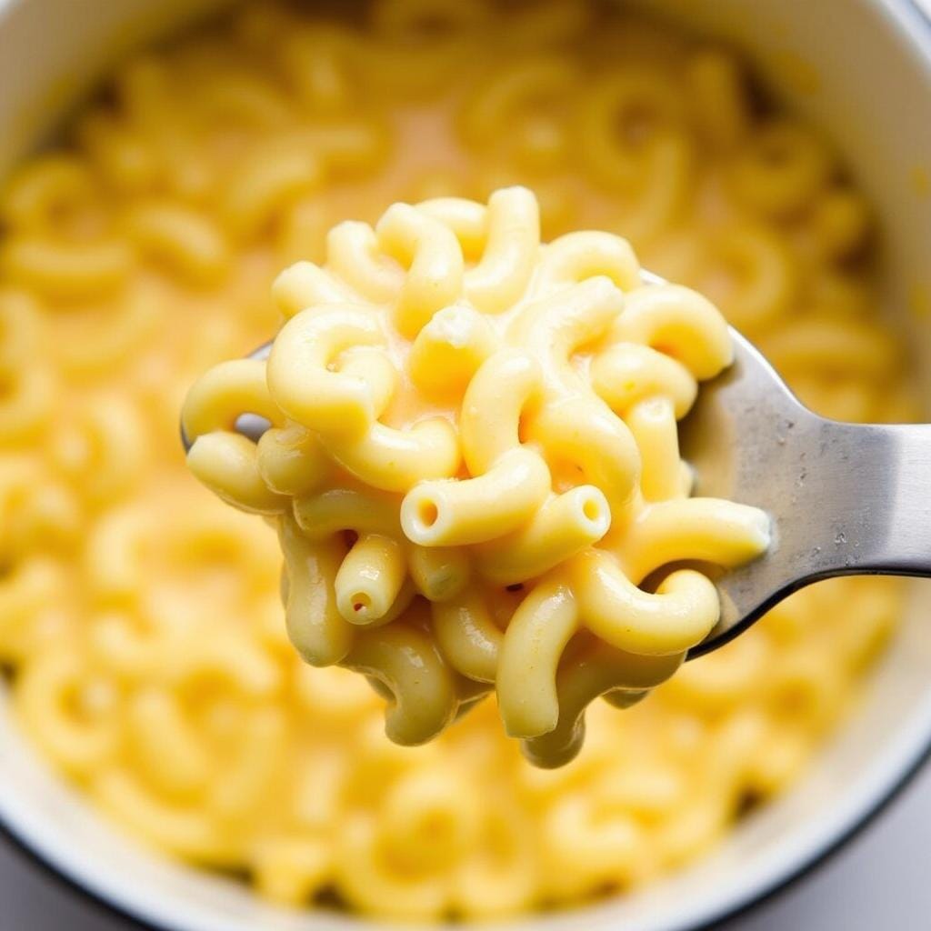 • Stir in butter, milk, cheddar cheese, mustard powder, salt, and pepper until creamy.