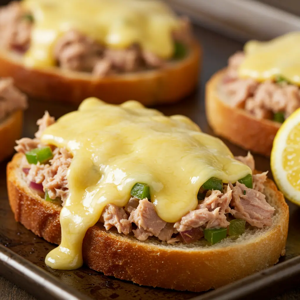 Serve open faced. Quick, cheesy, satisfying. Old school cool