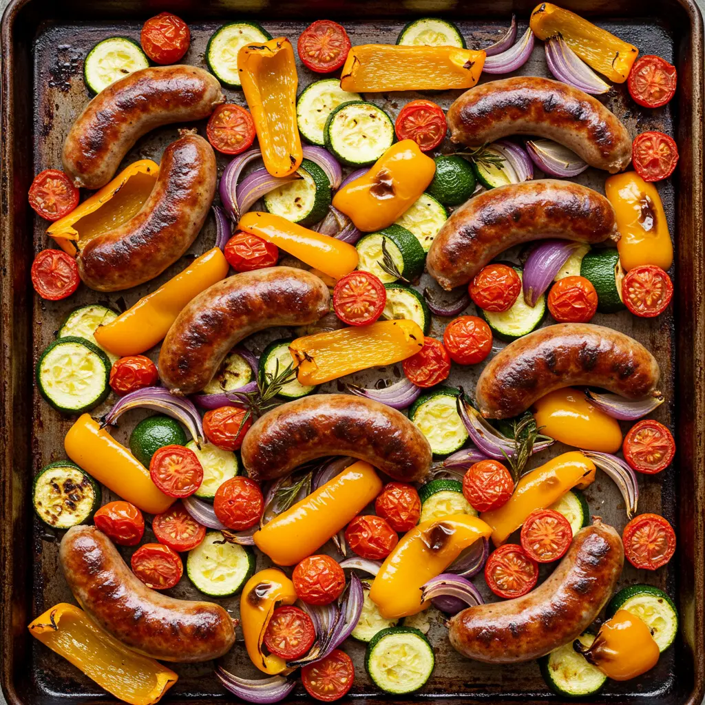 15. Sheet Pan Sausage & Summer Veggies Delight