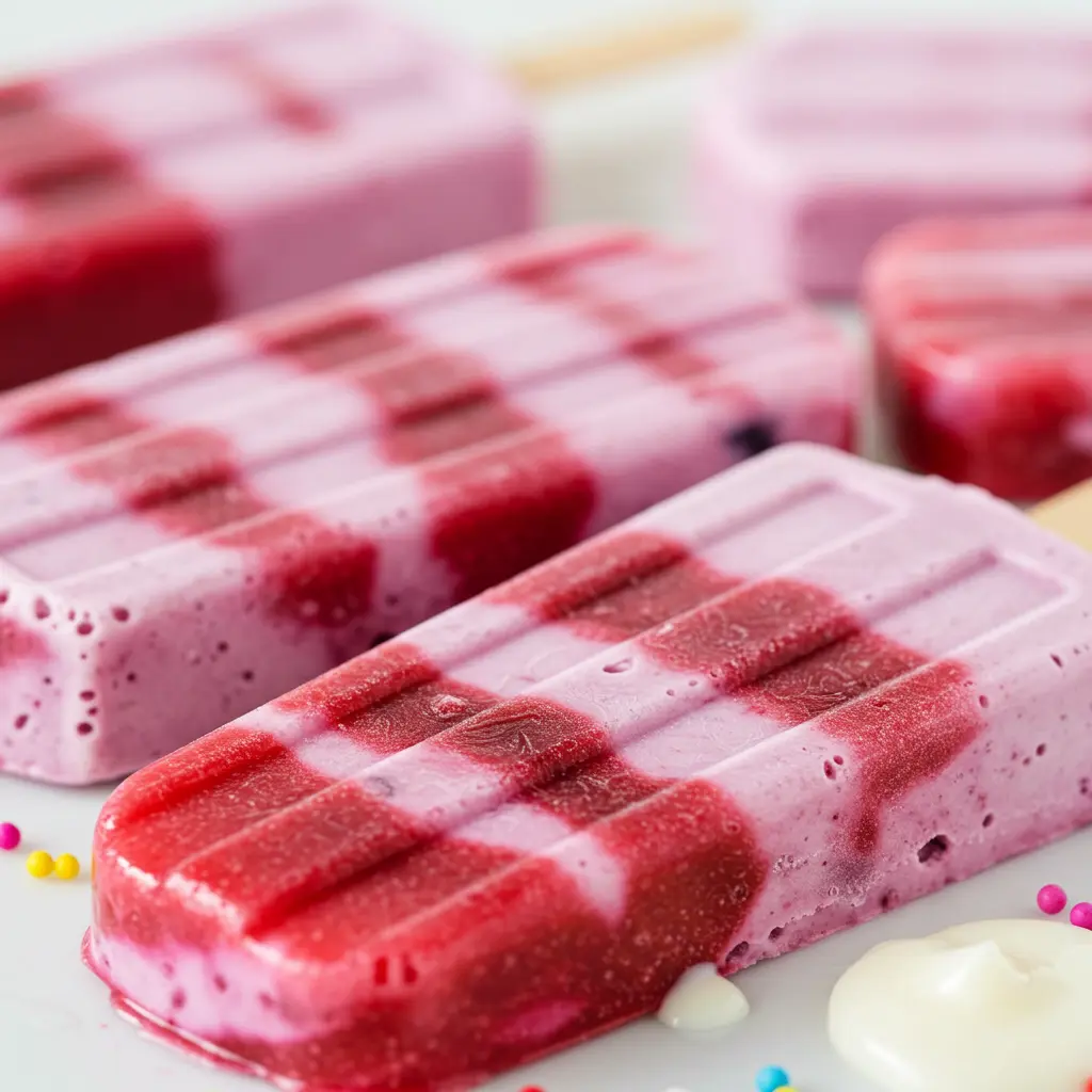 16. Berry Yogurt Swirl Popsicles: Pretty & Delicious