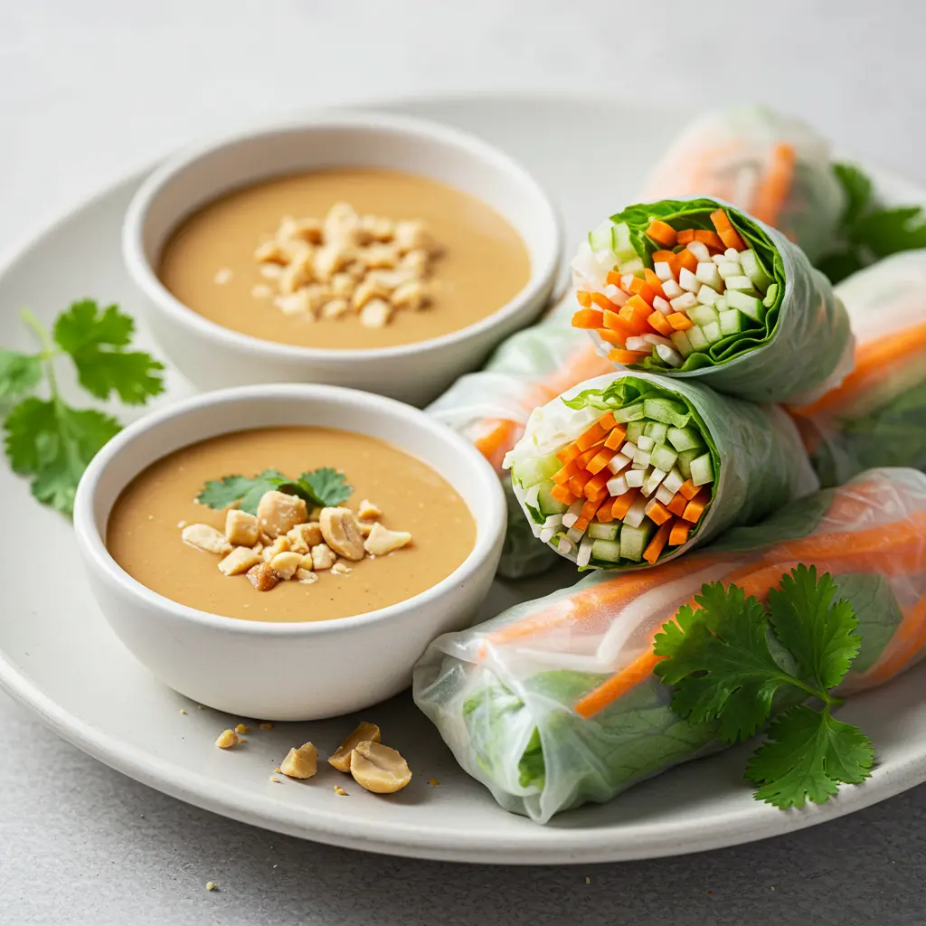 24. Veggie Spring Rolls with Peanut Dipping Sauce: Fresh & Flavorful