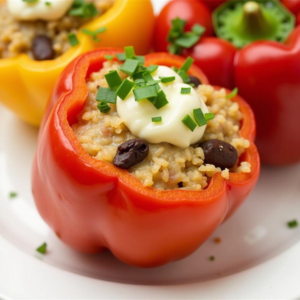 - Stuff the mixture into the bell peppers.