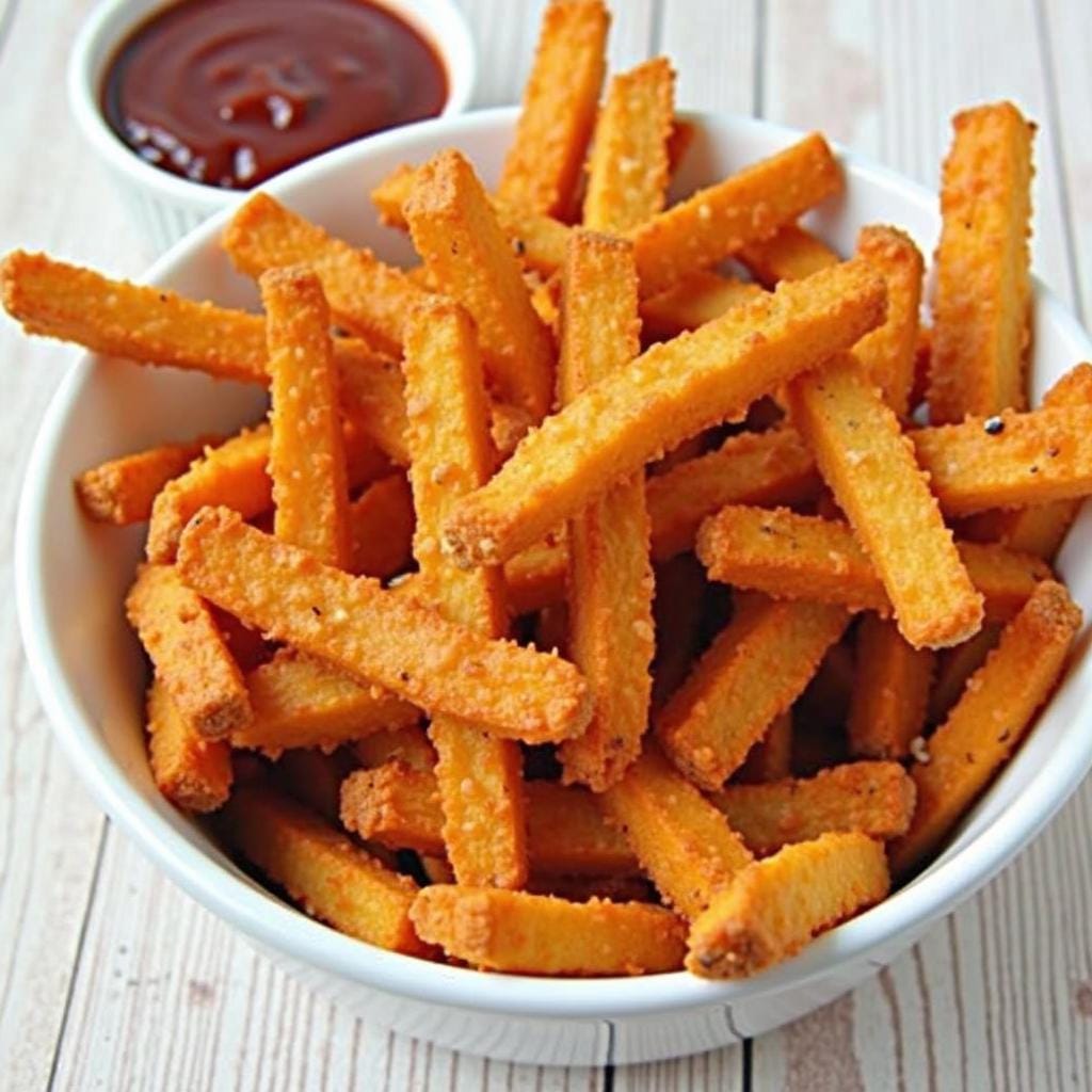 Tip: Soak the sweet potato fries in cold water for 30 minutes before baking to remove excess starch and ensure crispiness.